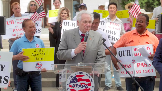 The Asian Pacific Islander American Public Affairs Association (APAPA) along with several community organizations and student leaders held a press conference and rally in support of Senate Bill 1363 Wednesday afternoon, to highlight that SB 1363 is currently parked in the Assembly Education Committee where Chair and Assemblyman Patrick O’Donnell refuses to set the measure for a committee hearing.