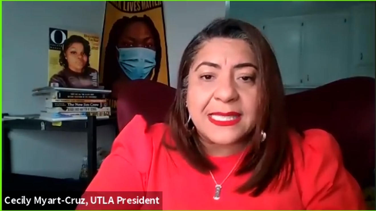 Last week, UTLA President Cecily Myart-Cruz released a statement to members encouraging adoption of a resolution, along with a motion form that said: